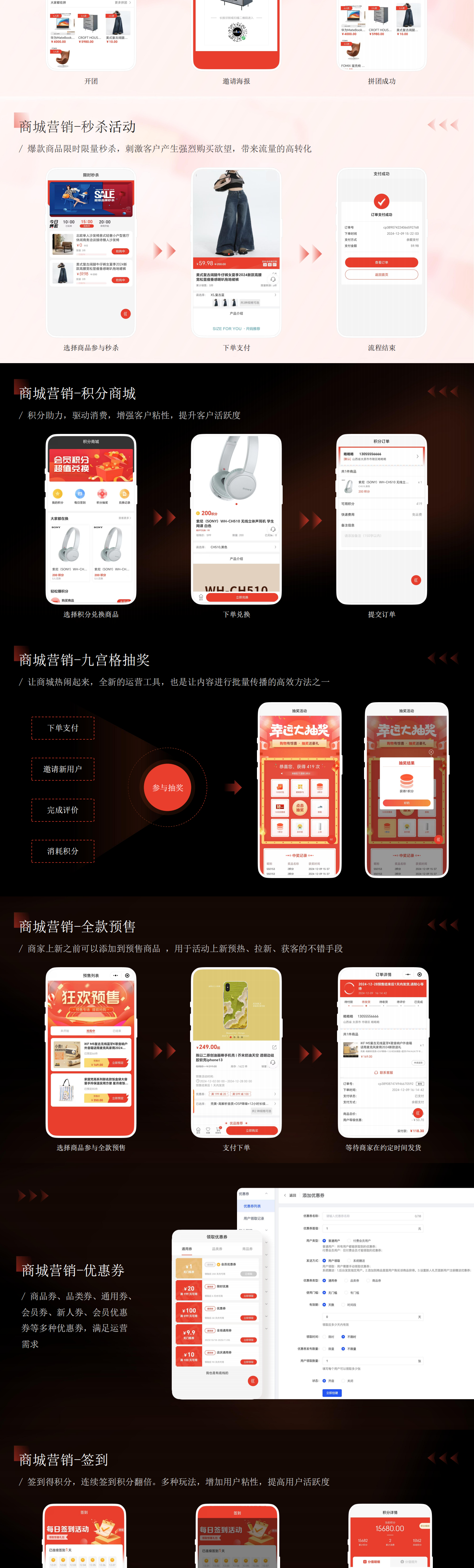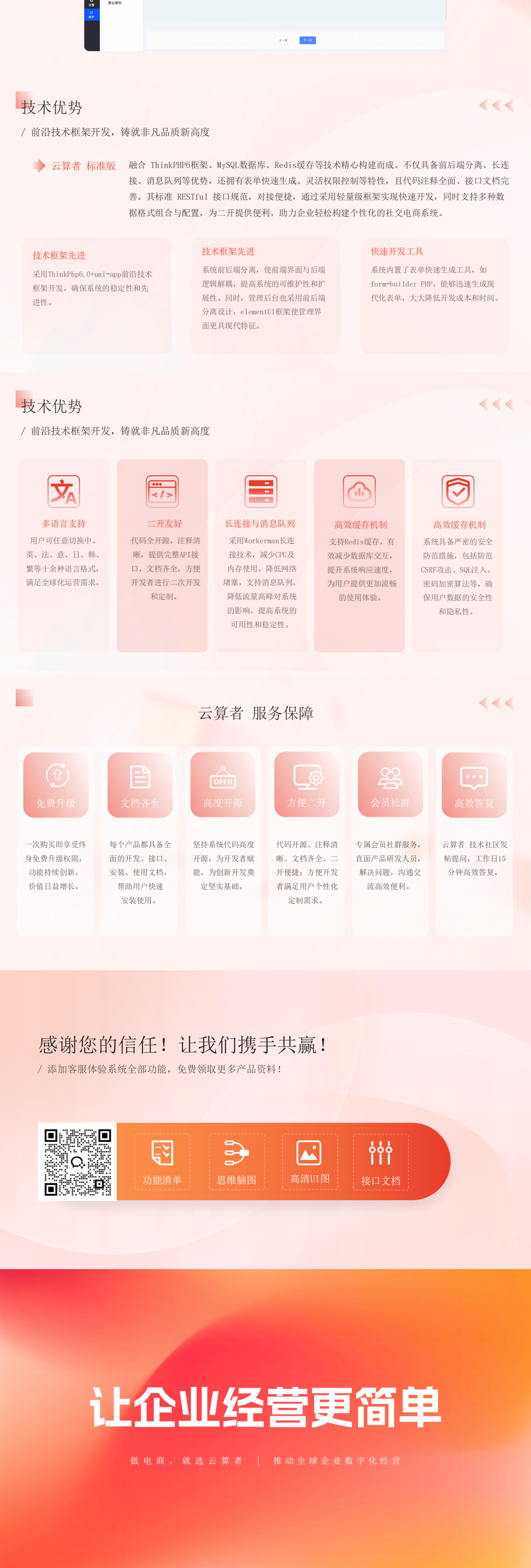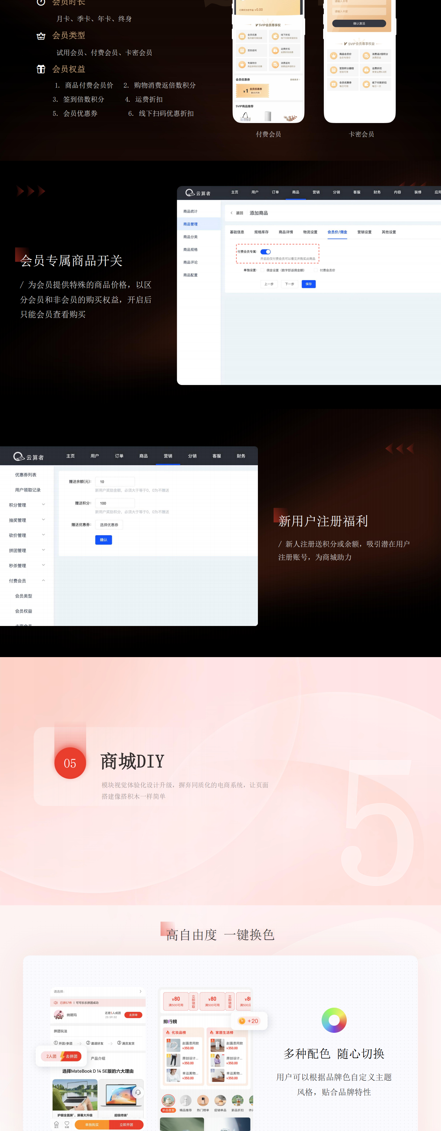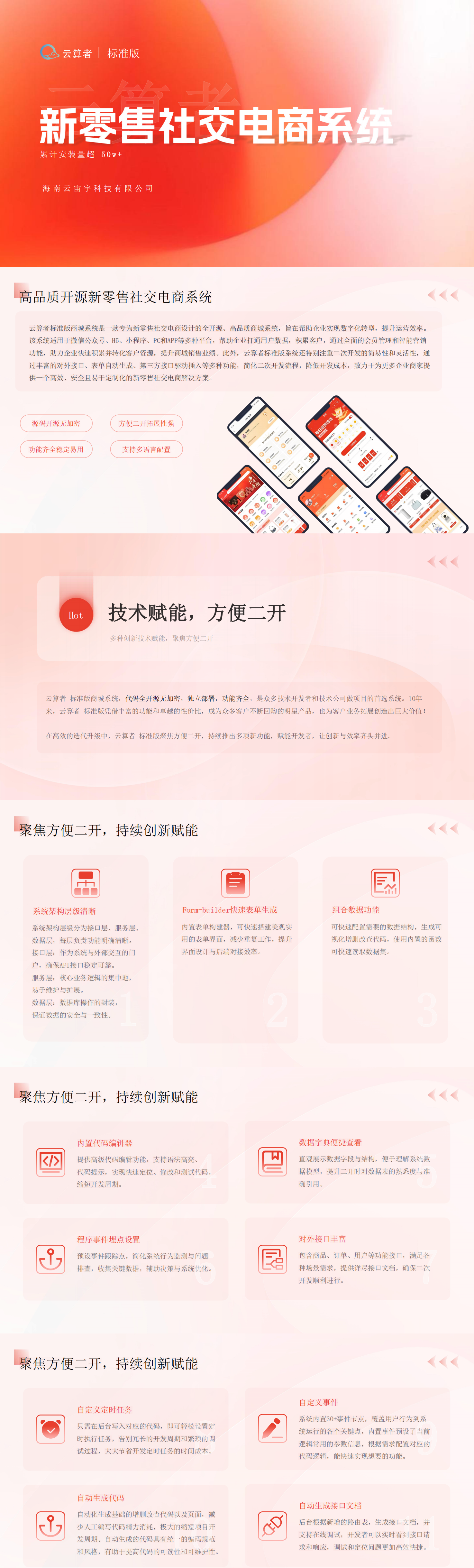 帮助中小型企业快速实现线上电商系统搭建,以社交电商为核心,借助系统完善的营销体系、分销体系拓展线上销售业务